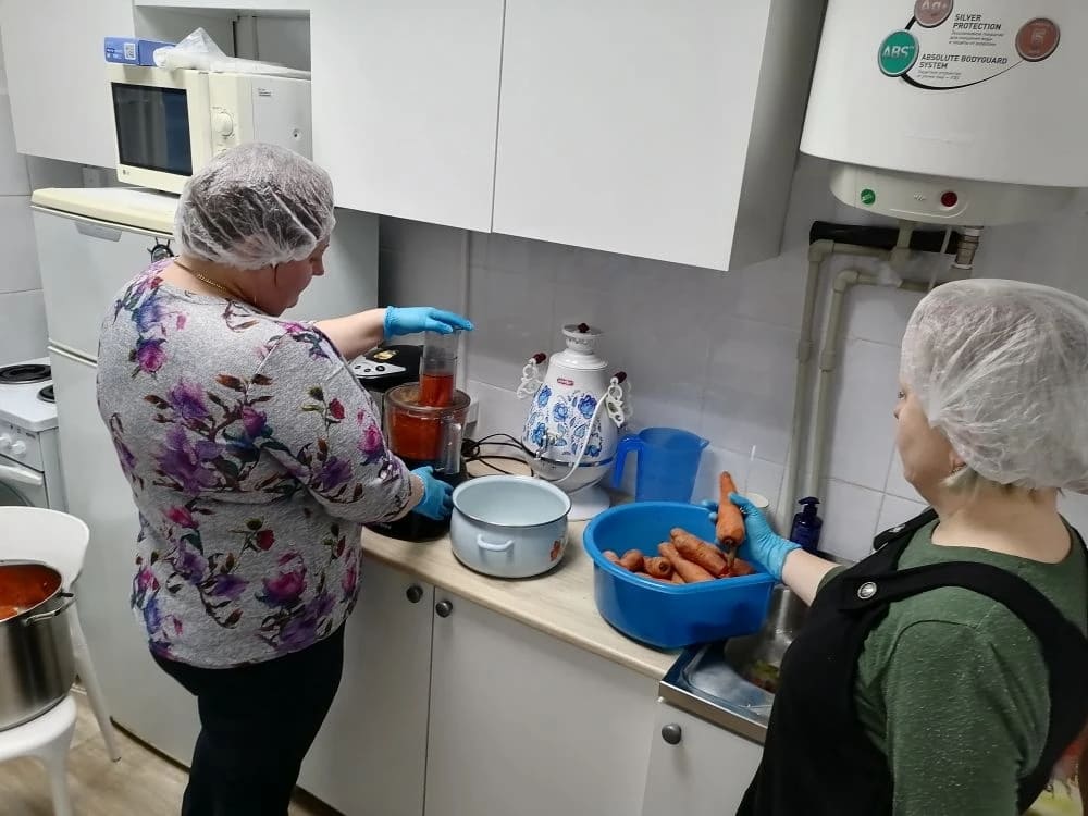 Сотрудники отделения "Специализированный жилой дом для граждан пожилого возраста и инвалидов" ГБУ "КЦСОН Краснобаковского муниципального округа" продолжают сушить овощи для изготовления сухих супов, отправляемых в зону действия СВО